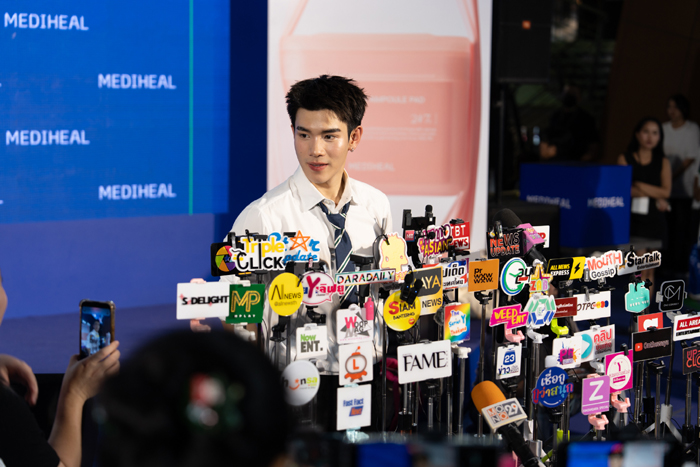 บรรยากาศภายในงาน ‘Pop-up: MEDIHEAL DERMA SHOP’ จัดเต็มท่ามกลางสื่อมวลชน ชาวสยามแฟนคลับล้นทะลัก เพราะ MEDIHEAL ขนไอเทมดูแลผิวตัวท็อปมาแบบครบเซต โดยเฉพาะ Toner Pad โทนเนอร์แพดอันดับ 1 จากเกาหลีใต้ที่หลายคนยกให้เป็นจุดเริ่มต้นของผิวดี ช่วยดูแลได้ครอบคลุมหลายปัญหาผิว และเข้าสู่ช่วงไฮไลต์เมื่อ ‘โฟร์ท ณัฐวรรธน์’ แบรนด์แอมบาสเดอร์ MEDIHEAL Toner Pad ปรากฏตัวบนเวทีด้วยลุคหนุ่มออฟฟิตที่จริงใจออร่าจับ งานผิวสุขภาพดีจนเห็นแล้วเชื่อเลยว่าผิวดีมีอยู่จริง แถมยังขึ้นมาแชร์เคล็ดลับ ‘เดอร์มาโซลูชันเพื่อผิวสุขภาพดี’ แบบไม่มีกั๊กอีกด้วย และยิ่งทำให้แฟนๆ ใจละลายกว่าเดิมเพราะกิจกรรมพิเศษสุดเอ็กซ์คลูซีฟที่ได้ใกล้ชิด ‘โฟร์ท’ ทั้งเล่นเกมและถ่ายภาพร่วมกับผู้โชคดีบนเวที เรียกเสียงกรี๊ดดังสนั่นตลอดกิจกรรมเติมความพีกความฟินให้บรรยากาศในงานยิ่งขึ้นไปอีกขั้น