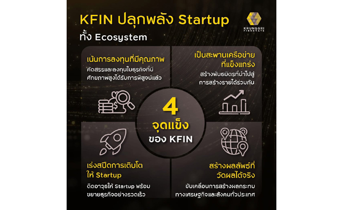ปัจจุบัน Krungsri Finnovate บริหารจัดการเงินลงทุนรวมกว่า 4,500 ล้านบาท ครอบคลุมอุตสาหกรรมยุทธศาสตร์ เช่น FinTech, SaaS, AI และ Mobility โดยในปี 2025 ได้ขยายการลงทุนเชิงรุกในกลุ่ม AI อย่าง fileAI และกลุ่มการเงินล้ำสมัยอย่าง OY! นอกจากนี้ ยังคงความโดดเด่นด้วยการมีสตาร์ทอัพระดับ Unicorn ในพอร์ตถึง 4 ราย ได้แก่ Flash Express, Grab, Klook และ Ascend Money พร้อมความสำเร็จในการจับคู่ทางธุรกิจ (Business Matching) กว่า 195 โครงการ ร่วมกับพันธมิตรและหน่วยงานในเครือกรุงศรี
