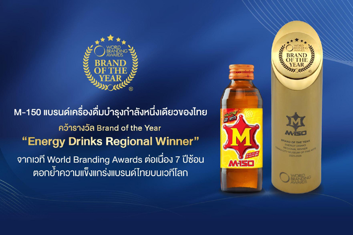 M-150 แบรนด์เครื่องดื่มบำรุงกำลังหนึ่งเดียวของไทย คว้ารางวัล “Brand of the Year Regional Winner” จากเวที World Branding Awards 2025–2026 ตอกย้ำความแข็งแกร่งของแบรนด์ไทยบนเวทีโลก และ