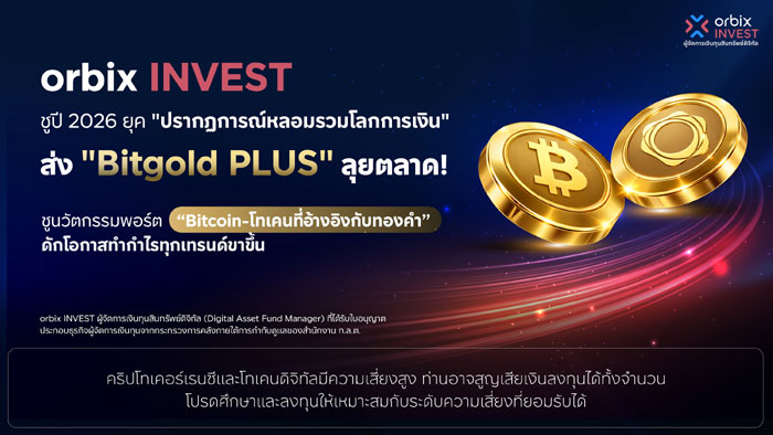 orbix INVEST ผู้จัดการเงินทุนสินทรัพย์ดิจิทัลชั้นนำ เผยมุมมองการลงทุนปี 2026 ชี้เป็นปีแห่งปรากฏการณ์หลอมรวมโลกการเงินหรือยุคที่โลกการเงินดั้งเดิมและสินทรัพย์ดิจิทัลผสานเป็นเนื้อเดียวกัน พร้อมเปิดตัวกลยุทธ์เรือธงใหม่ล่าสุด “Bitgold PLUS” ขานรับกระแสเงินทุนสถาบันที่ไหลเข้าสู่บิตคอยน์ (Bitcoin) ในฐานะสินทรัพย์สำรองเทียบเท่าทองคำ ชูจุดเด่นโมเดลการลงทุนแบบ Dynamic Weighting ผสานการลงทุนใน “Bitcoin และ โทเคนที่อ้างอิงกับทองคำ (Gold-backed token*)” พร้อมปรับพอร์ตตามสัญญาณเทคนิค เพื่อสร้างโอกาสรับผลตอบแทนที่สูงกว่า ไม่ว่าสินทรัพย์ใดจะเข้าสู่รอบขาขึ้น
