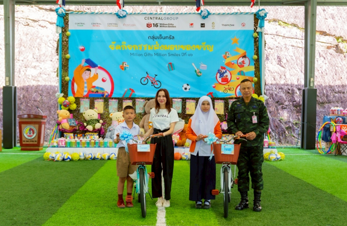 สมกมล จิราธิวัฒน์ ผู้อำนวยการอาวุโส กลุ่มเซ็นทรัล กล่าวว่า “กลุ่มเซ็นทรัล ร่วมกับกองทัพบก ดำเนินโครงการ “มิลเลี่ยนกิฟต์ มิลเลี่ยนสมายล์” อย่างต่อเนื่องเป็นปีที่ 16 เพื่อเชิญชวนคนไทย คู่ค้า ภาคีเครือข่าย และธุรกิจในเครือ ร่วมส่งต่อของขวัญแทนความรักและความห่วงใย มอบให้แก่เยาวชนในพื้นที่ 3 จังหวัดชายแดนภาคใต้และจังหวัดสงขลา เนื่องในโอกาสวันเด็กแห่งชาติและเทศกาลปีใหม่
