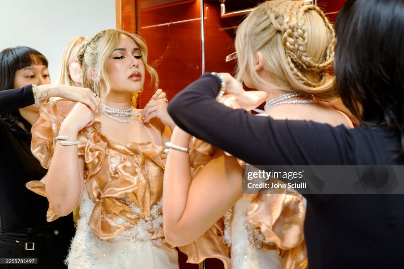 ไฮไลต์สำคัญ คุณส้มโอ ได้เลือกชุดกูตูร์โทนสีทอง-ขาว ที่ออกแบบและตัดเย็บ เฉพาะบุคคล โดยดีไซเนอร์ระดับโลก “Gaby Charbachy” เพื่อค่ำคืนนี้โดยเฉพาะ สะท้อนภาพลักษณ์ของความหรูหรา พลังอำนาจ และความมั่นใจของผู้หญิงที่สร้างอาณาจักรด้วยมือของตนเอง
