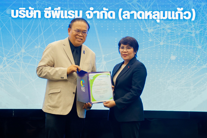 นายชุมพล ลีละศุภพงษ์ ผู้ช่วยกรรมการผู้จัดการ พร้อมด้วยคณะผู้บริหาร บริษัท ซีพีแรม จำกัด ทั้ง 7 แห่ง ทั่วประเทศ เข้ารับประกาศนียบัตรรับรองให้ใช้เครื่องหมายคาร์บอนฟุตพริ้นท์ขององค์กร (Carbon Footprint for Organization: CFO) ในพิธีมอบประกาศนียบัตรเครื่องหมายรับรองฉลากคาร์บอน จัดโดยองค์การบริหารจัดการก๊าซเรือนกระจก (องค์การมหาชน) หรือ อบก. ถือเป็นเครื่องหมายยืนยันถึงการดำเนินงานด้านคาร์บอนฟุตพริ้นท์ และความรับผิดชอบต่อสังคมของบริษัทฯ บนมาตรฐานระดับสูงสุด พร้อมเดินหน้าสู่เป้าหมาย Net Zero เพื่อสร้างความมั่นคงทางอาหาร และความยั่งยืนทางอาหาร