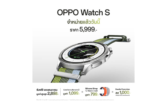 อีกทั้งยังมาพร้อม Bundle Promotion ลด 1,000 บาท เมื่อซื้อ OPPO Watch S คู่กับสมาร์ตโฟน OPPO Reno15 Series 5G