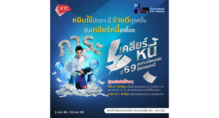ผู้ที่สนใจสามารถเข้าร่วมโครงการเคลียร์หนี้ ปี 69 ได้ตั้งแต่วันที่ 1 มกราคม 2569 – วันที่ 31 ธันวาคม 2569 ลงทะเบียนผ่าน SMS พิมพ์ OK69 ตามด้วยหมายเลขบัตร 16 หลักส่งมาที่เบอร์ 061-384-5000 ช่องทางเว็บไซต์ www.ktc.co.th/cleardebt69 หรือทางแอปพลิเคชัน KTC Mobile และสามารถสอบถามรายละเอียดเพิ่มเติมได้ที่ ศูนย์บริการสมาชิก “เคทีซี ทัช” ทุกสาขาทั่วประเทศ หรือ KTC PHONE 02 123 5000 กด 0 กด 2 ทั้งนี้ ผู้ถือบัตรกดเงินสด “เคทีซี พราว” ควรกู้เท่าที่จำเป็นและชำระคืนไหว อัตราดอกเบี้ย 20%-25% ต่อปี