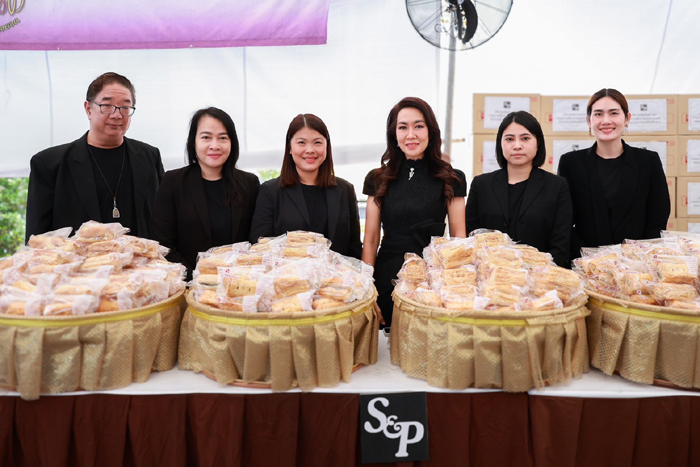 คุณมณีสุดา ศิลาอ่อน ประธานเจ้าหน้าที่สำนักพัฒนาความยั่งยืนและสื่อสารองค์กร บริษัท เอส แอนด์ พี ซินดิเคท จำกัด (มหาชน) มอบผลิตภัณฑ์ S&P จำนวน 8,980 ชิ้น เพื่อสนับสนุนและให้บริการแก่ประชาชนที่เดินทางเข้าเฝ้าฯ กราบถวายบังคมพระบรมศพ สมเด็จพระนางเจ้าสิริกิติ์ พระบรมราชินีนาถ พระบรมราชชนนีพันปีหลวง ณ พระที่นั่งดุสิตมหาปราสาท ในการนี้ พล.อ.ต.จักรพงษ์ หอมไกรลาส อธิบดีกรมสนับสนุน และคุณอรทัย สกุณี รอง ผู้อำนวยการกองพระเครื่องต้น สำนักพระราชวัง ให้เกียรติรับมอบ ณ บริเวณเต็นท์อาหารพระราชทาน ท้องสนามหลวง เมื่อเร็วๆ นี้