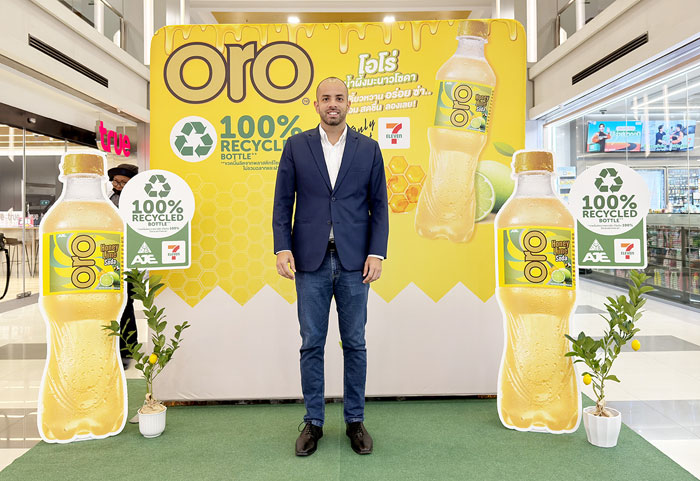 นางสาวนริศรา บำรุงศิริ ผู้จัดการทั่วไปสำนัก Merchandising– Packaged Beverage บริษัท ซีพีออลล์ จำกัด (มหาชน) กล่าวเสริมว่า “การร่วมพัฒนาผลิตภัณฑ์ ‘โอโร่’ สอดคล้องกับการเปลี่ยนผ่านสู่เชิงรุกด้วย CP Sustainability Center of Excellence (COE) ที่ขับเคลื่อนเป้าหมายความยั่งยืน 3 ด้านผ่านกลยุทธ์ ‘2 ลด 4 สร้าง 1DNA’ (สิ่งแวดล้อมสังคมและบรรษัทภิบาล) ของเราในการช่วยลดผลกระทบเชิงลบต่อสิ่งแวดล้อม เพื่อลดการปล่อยก๊าซเรือนกระจกสู่ชั้นบรรยากาศของโลก รวมถึงสอดรับกับพฤติกรรมที่เปลี่ยนแปลงไปของผู้บริโภคยุคปัจจุบัน ที่เริ่มมองหาผลิตภัณฑ์ที่ไม่เพียงรสชาติดีและคุ้มค่า แต่ยังต้องมีกระบวนการผลิตที่เป็นมิตรต่อสิ่งแวดล้อม ซึ่งการเปลี่ยนมาใช้บรรจุภัณฑ์ rPET 100% สามารถช่วยลดการปล่อยคาร์บอนได้สูงถึงร้อยละ 79 เมื่อเทียบกับการใช้พลาสติกแบบเดิม และช่วยสร้างทางเลือกใหม่ให้แก่ลูกค้าเซเว่นอีเลฟเว่นทั่วประเทศได้เป็นอย่างดี”