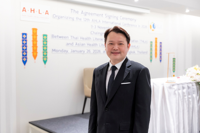นายทศพร นิษฐานนท์ (ที่ 5 จากซ้าย) กรรมการผู้จัดการ บริษัท แอมเวย์ (ประเทศไทย) จำกัด ร่วมสนับสนุนการประชุมระดับนานาชาติ ว่าด้วยความรอบรู้ด้านสุขภาพ AHLA ครั้งที่ 12 ในพิธีลงนามบันทึกข้อตกลงความร่วมมือระหว่างสมาคมความรอบรู้ด้านสุขภาพแห่งเอเชีย (AHLA) และสมาคมส่งเสริมความรอบรู้ด้านสุขภาพไทย (THLA) เพื่อเตรียมความพร้อมในการจัดการประชุมวิชาการนานาชาติ ครั้งที่ 12 ประจำปี 2026 (The 12th AHLA International Health Literacy Conference) โดยมีเป้าหมายเป็นเวทีแลกเปลี่ยนองค์ความรู้ งานวิจัย และแนวปฏิบัติด้านสุขภาพจากผู้เชี่ยวชาญทั้งในและต่างประเทศ เพื่อร่วมกันยกระดับความรอบรู้ด้านสุขภาพ และขับเคลื่อนสุขภาวะที่ยั่งยืนของสังคมไทยและภูมิภาค ภายใต้ธีมหลัก “ความรอบรู้ด้านสุขภาพและเป้าหมายการพัฒนา ที่ยั่งยืน” (Health Literacy & SDGs) ซึ่งจะจัดขึ้นระหว่างวันที่ 1 – 3 พฤศจิกายน 2569 ณ ศูนย์ประชุมมหาวิทยาลัยเชียงใหม่ โดยมี นายแพทย์วชิระ เพ็งจันทร์ (กลาง) นายกสมาคมส่งเสริมความรอบรู้ด้านสุขภาพไทย (THLA) เป็นประธานในพิธี
