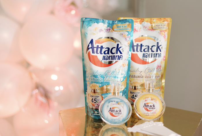สำหรับ “แอทแทค จิวเวลรี คอลเลกชัน” นับว่าเป็นนวัตกรรมตอบโจทย์ “Confidence Every Move” ของคนเมือง ที่พัฒนาขึ้นจากอินไซต์ผู้บริโภคผสานความเชี่ยวชาญด้านนวัตกรรมของคาโอ ด้วยเทคโนโลยี Jewel Boost Agent ที่ช่วยขจัดความหมองให้ผ้าสว่างสดใสเปล่งประกายดุจจิวเวลรี พร้อมเทคโนโลยีแคปซูลน้ำหอมที่ช่วยล็อกกลิ่นหอมหรูเหนือระดับยาวนานสูงสุดถึง 45 วัน กระจายกลิ่นหอมทุกครั้งที่ขยับตอบโจทย์ไลฟ์สไตล์คนเมืองที่ต้องการความมั่นใจยาวนานโดยไม่เพิ่มขั้นตอนในการซัก