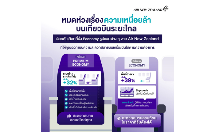 “ด้วยระยะทางและตำแหน่งที่ตั้งของประเทศนิวซีแลนด์ เราจึงมุ่งมั่นยกระดับประสบการณ์การเดินทางระยะไกลให้ดีที่สุด โดยให้ความสำคัญกับการพักผ่อนและความสะดวกสบายตลอดการเดินทาง เพราะเราเข้าใจดีว่าการได้เดินทางถึงจุดหมายโดยไม่รู้สึกอ่อนล้าสามารถยกระดับประสบการณ์การเดินทางตลอดทั้งทริปได้อย่างแท้จริง ข้อมูลเชิงลึกเหล่านี้ตอกย้ำแนวทางของเราในการออกแบบพื้นที่บนเครื่องบินที่ช่วยให้ผู้โดยสารได้พักผ่อนอย่างเต็มที่ และเพลิดเพลินกับทุกช่วงของการเดินทาง สำหรับ Air New Zealand ความสะดวกสบายไม่ใช่เพียงทางเลือก แต่เป็นหัวใจของการเดินทาง”