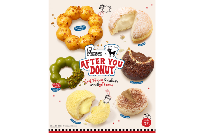 Mister Donut (มิสเตอร์ โดนัท) แบรนด์โดนัทชั้นนำของไทย ประกาศความร่วมมือกับ After You (อาฟเตอร์ยู) แบรนด์ขนมหวานระดับไอคอน เปิดตัวแคมเปญ “After You Donut – Signature x Signature” ภายใต้การพัฒนาโปรดักต์ร่วมกันของทีมวิจัยและพัฒนา (R&D) จากทั้งสองแบรนด์ ร่วมกับ คุณเมย์–กุลพัชร์ กนกวัฒนาวรรณ ผู้ก่อตั้ง After You เพื่อถ่ายทอดเอกลักษณ์ของขนมหวานสไตล์ After You ให้อยู่ในรูปแบบโดนัทที่เข้าถึงง่าย ตอบโจทย์ไลฟ์สไตล์การบริโภคในชีวิตประจำวัน