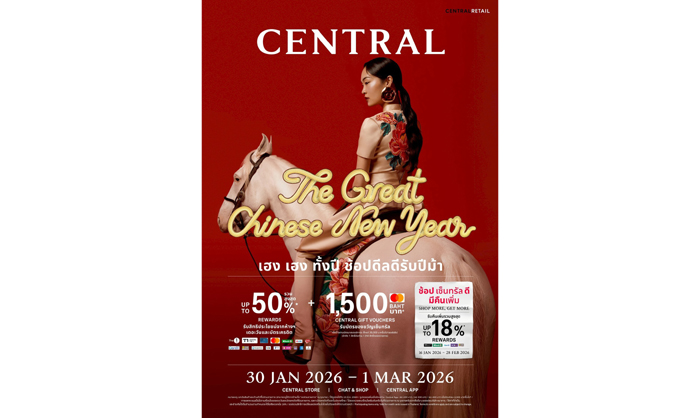 ร่วมเฉลิมฉลองเทศกาลตรุษจีนอย่างมีสไตล์ เปิดรับความเฮง ความปัง และประสบการณ์ระดับเวิลด์คลาส ได้ที่ Central Embassy กับแคมเปญ Chinese New Year 2026 ตั้งแต่วันที่ 1 กุมภาพันธ์ – 1 มีนาคม 2569 และกับแคมเปญ “The Great Chinese New Year 2026” ตั้งแต่วันที่ 30 ม.ค.–1 มี.ค. 69 ที่ห้างเซ็นทรัลชิดลม ร่วมทั้งช้อปง่ายทุกที่ ทุกเวลา ผ่านช่องทางช้อปปิ้งสุดพิเศษทั้งเว็บไซต์ www.central.co.th, Central App, Central Chat & Shop ช้อปและแชตผ่านไลน์ @Centralofficial รวมถึงช้อปผ่านเฟซบุ๊กเพจและอินบ็อกซ์ของ Facebook page: Central Department Store