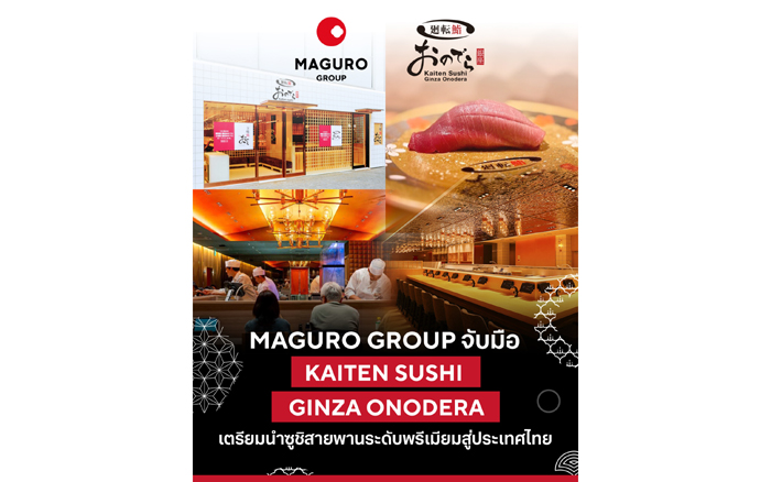 MAGURO Group สร้างประวัติศาสตร์ครั้งใหม่ให้วงการอาหารอีกครั้ง เตรียมเปิดแบรนด์ใหม่ Kaiten Sushi Ginza Onodera (ไคเต็น ซูชิ กินซ่า โอโนเดระ) ร้านซูชิสายพานระดับพรีเมียม ที่คัดสรรวัตถุดิบ คุณภาพสูง จากเครือ Onodera Group ผู้บริหารแบรนด์ร้านอาหารญี่ปุ่นชั้นนำระดับโลก นับเป็น ความสำเร็จ ต่อเนื่องหลังจากการ นำ Tonkatsu AOKI (ทงคัตสึ อาโอกิ) ร้านผู้เชี่ยวชาญด้านหมูทอดทงคัตสึ และ KIWAMIYA (คิวามิยะ) ร้านแฮมเบิร์กและสเต็กเนื้อวากิว ต้นตำรับจากญี่ปุ่น เข้ามาเปิดในประเทศไทย ตอกย้ำการเป็นผู้นำด้านบริหารแบรนด์ร้านอาหารชั้นแนวหน้าในประเทศไทย สามารถถ่ายทอดวัฒนธรรม อาหารญี่ปุ่นได้อย่างแท้จริง ผสานความเข้าใจในความต้องการของผู้บริโภคชาวไทยอย่างลึกซึ้ง