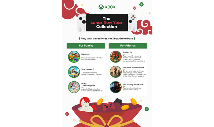 ตรุษจีนคือช่วงเวลาของการเฉลิมฉลองโชคลาภ เชื่อมสายสัมพันธ์ และร่วมสนุกสนานกับครอบครัวและเพื่อนฝูง และด้วย Xbox Game Pass การเล่นเกมสามารถนำพาคนที่คุณรักมารวมกันเพื่อสร้างช่วงเวลาที่ น่าจดจำและมีความหมาย