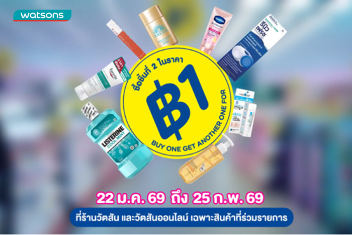 สวยคุ้มแบบนี้มีแค่ที่วัตสันเท่านั้น รีบพุ่งตัวมารับแรงดึงดูดแห่งความคุ้มค่า แล้วชอปสนุกแบบไม่มีสะดุดได้ตั้งแต่วันนี้ –25 กุมภาพันธ์ 2569 ที่ร้านวัตสันทุกสาขาทั่วประเทศ หรือชอปออนไลน์ง่ายๆ ที่วัตสันออนไลน์แบบเรียลไทม์ตลอด 24 ชั่วโมง สอบถามข้อมูลเพิ่มเติมได้ที่สื่อประชาสัมพันธ์ ณ จุดขาย หรือ Line Official @WatsonsTH, เว็บไซต์ Watsons.co.th หรือผ่านแอป WatsonsTH ดาวน์โหลดได้ที่ Google Play Store และ App Store