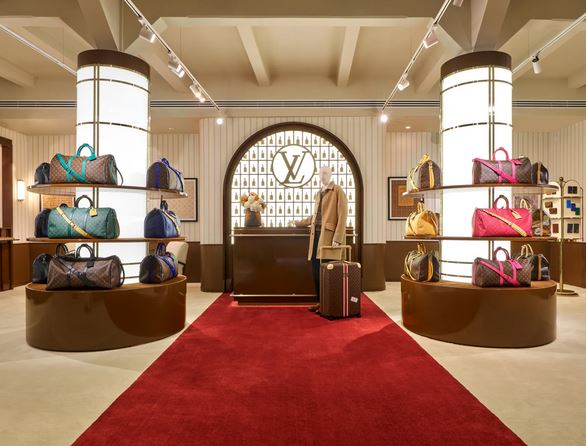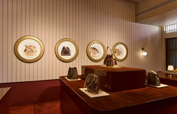 Louis Vuitton ใช้คอนเซ็ปต์ “โรงแรมจำลอง” เพื่อเล่าเรื่องราวจุดเริ่มต้นของแบรนด์ทั้งในมุมความชำนาญและความสุนทรีในการเดินทาง แม้จะใช้คำว่า Hotel แต่ก็ไม่ใช่โรงแรมจริง เพราะเป็นพื้นที่ชั่วคราวที่เนรมิตให้มองเป็นโรงแรมที่มีห้องต่าง ๆ แต่ละห้องอุทิศให้กับ 5 ไลน์สินค้าหลักทั้ง Keepall, Speedy, Alma, Neverfull และ Noé ทุกห้องจะมีการจัดแสดงชิ้นงานน่าสนใจ และบางแห่งมีบาร์แชมเปญ ยิม เฉลียง พื้นที่บริการซ่อมกระเป๋า และพื้นที่สั่งทำชิ้นงานตกแต่งส่วนตัว