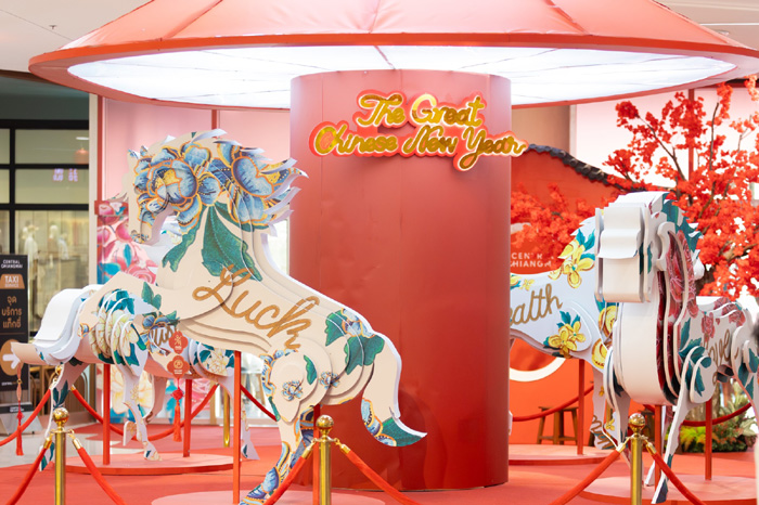• เซ็นทรัล เชียงใหม่: ‘Gallop of Fortune – ศึกมงคลพลังม้าแห่งโชคลาภ’ ถ่ายทอดแนวคิดม้านำโชคในฐานะตัวแทนของ ‘พลังที่ไม่หยุดนิ่ง’ สัญลักษณ์แห่งความก้าวหน้า ความเป็นสิริมงคล และโชคดีในเทศกาลตรุษจีน เชื่อมโยงเรื่องราวความเฮงทั่วทั้งศูนย์การค้า โดยมีแลนด์มาร์กหลัก ‘ม้าหมุนมงคล’ เป็นจุดรับพลังแห่งการหมุนเวียนของโชคลาภ ความสำเร็จ และความรุ่งเรือง พร้อมกระจายม้านำโชคและลวดลายมงคลทั่วพื้นที่ สร้างประสบการณ์รับพลังเฮงตลอดเทศกาล
