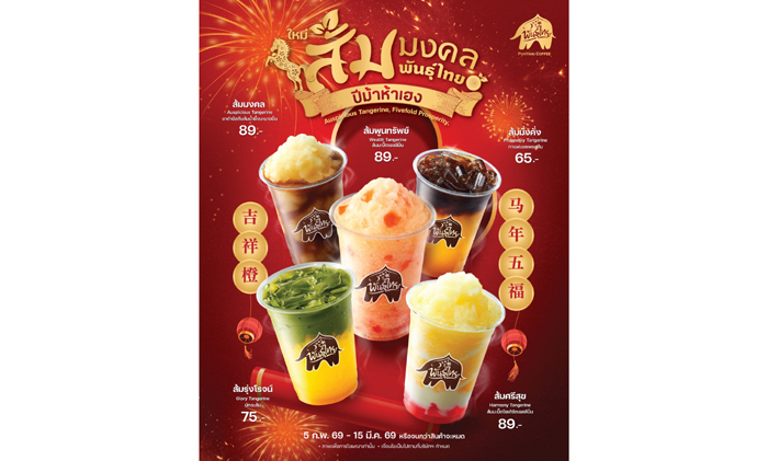 เสริมความเฮงรับปีม้าด้วย 5 เมนูมหาเฮงจาก “ส้มมงคลพันธุ์ไทย” ที่ทุกคนรอคอย พิเศษ! กับ 2 เมนูใหม่ *ส้มรุ่งโรจน์และส้มพูนทรัพย์ อร่อย สดชื่น ไม่ซ้ำ เอาฤกษ์เอาชัยได้ทุกวันตั้งแต่วันที่ 5 ก.พ. 69– 15 มี.ค. 69 หรือจนสินค้าจะหมดได้ที่พันธุ์ไทยทุกสาขา และบริการเดลิเวอรี ส่งตรงความเฮงถึงบ้าน