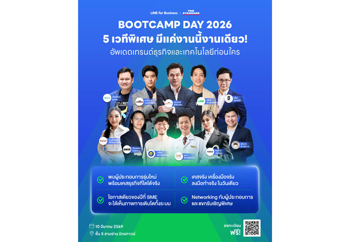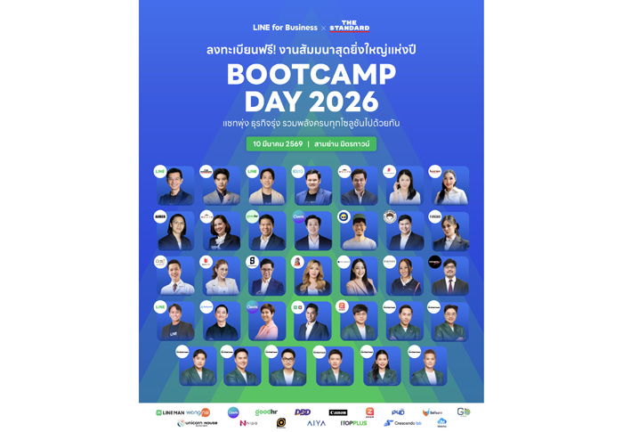 งานสัมมนาแห่งปีจาก LINE เพื่อผู้ประกอบการ SME ไทย BOOTCAMP DAY 2026 เตรียมกลับมาอย่างยิ่งใหญ่อีกครั้ง พร้อมอัปเกรดความเข้มข้นทั้งเนื้อหาและประสบการณ์ ภายใต้แนวคิด “แชทพุ่ง ธุรกิจรุ่ง รวมพลังครบทุกโซลูชันไปด้วยกัน” โดยในปีนี้ LINE ประเทศไทย ผนึกกำลังกับ THE STANDARD เสริมมิติด้านคอนเทนต์และมุมมองธุรกิจเชิงลึก เพื่อยกระดับเวทีแห่งปีให้เป็นพื้นที่รวมพลังของ SMEs ไทย เริ่มต้นปีด้วยการเติมพลัง เติมไฟ ให้ผู้ประกอบการไทยก้าวสู่ยุคการขายผ่านแชทอย่างเต็มตัว งานจะจัดขึ้นในวันที่ 10 มีนาคม 2569 เวลา 8.30 – 17.30 น. ที่สามย่านมิตรทาวน์ ฮอลล์ ชั้น 5