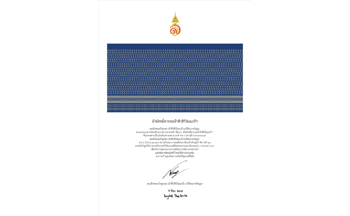 • ลายเชิงผ้ารูปหัวใจ สื่อถึงความรักที่ทรงมีต่อประชาชนชาวไทยทุกคน