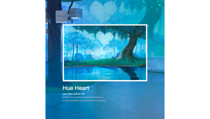 2) “Hue Heart” ผลงาน “มนพัทธ์ คำสี” นักศึกษาชั้นปีที่ 2คณะสถาปัตยกรรม ศิลปะและการออกแบบสถาบันเทคโนโลยีพระจอมเกล้าเจ้าคุณทหารลาดกระบังถ่ายทอดตัวตน “น้องคิว– นายภาคิน โซ๊ะเลาะ” ที่เปรียบตนเองดั่งต้นไม้ ไม่ว่าจะผ่านร้อนหรือผ่านหนาว สุดท้ายมันก็ยังยืนหยัดในตัวตน เพื่อวันหนึ่งจะกลายเป็นป่าใหญ่ที่งดงามและแข็งแกร่ง