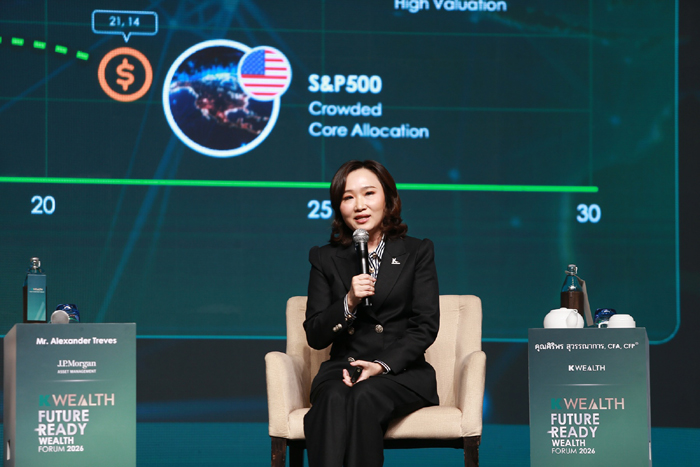บทบาทของ K WEALTH ในวันนี้จึงไม่ใช่เพียงเรื่องผลิตภัณฑ์ทางการเงิน แต่เป็นพันธมิตรเชิงกลยุทธ์ (Strategic Partner) ในการบริหารความมั่งคั่งให้กับลูกค้าเพื่อให้สามารถรับมือระเบียบโลกใหม่ ประกอบด้วย 3 แกนหลัก ได้แก่ 1) Diversification สร้างระบบกระจายพอร์ตที่สมดุลและยืดหยุ่น เพื่อให้พอร์ต “ไม่เปราะบาง” ในทุกสถานการณ์ 2) Downside Awareness เน้นบริหารความเสี่ยงผ่านฉากทัศน์ต่าง ๆ (Scenarios) ปกป้องเงินลงทุนในยามตลาดผันผวนแทนการไล่ล่าจังหวะทำกำไรสูงสุด 3) Long-term Discipline ยึดมั่นวินัยการลงทุนระยะยาว เพื่อเอาชนะแรงกดดันจากอารมณ์และข้อมูลที่ล้นทะลัก