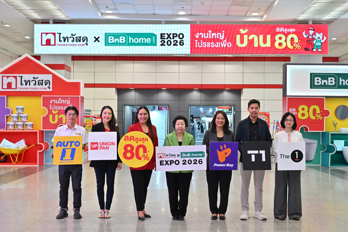 นางปาริชาติ ยามวินิจ ที่ปรึกษาประธานเจ้าหน้าที่บริหาร บริษัท ซีอาร์ซี ไทวัสดุ จำกัด ในเครือเซ็นทรัล รีเทล (ลำดับที่ 4 จากซ้าย) นางสาวชุติพร คงเจริญสุข ผู้ช่วยกรรมการผู้จัดการใหญ่ ฝ่ายการตลาด บริษัท ซีอาร์ซี ไทวัสดุ จำกัด ในเครือเซ็นทรัล รีเทล (ลำดับที่ 3 จากซ้าย) จับมือพันธมิตรชั้นนำ นางสาวประภาวดี กุวสาร ผู้ช่วยกรรมการ ผู้จัดการใหญ่อาวุโส ฝ่ายปฏิบัติการบริษัท เพาเวอร์บาย จำกัดในเครือเซ็นทรัล รีเทล (ลำดับที่ 5 จากซ้าย) และนางสาววรางคณา จิตศักดานนท์ กรรมการบริหาร บริษัท ยูเนี่ยน แพน เอ๊กซิบิชั่นส์ จำกัด (ลำดับที่ 2 จากซ้าย) พร้อมด้วยคณะผู้บริหารจาก ออโต้วัน และบัตรเครดิตเซ็นทรัล เดอะวัน ร่วมเปิดงาน “ไทวัสดุ x บีเอ็นบี โฮม เอ็กซ์โป 2026” มหกรรมสินค้าเพื่อบ้านครบวงจรแห่งปีที่รวมทัพสินค้าวัสดุก่อสร้าง เครื่องมือช่าง เฟอร์นิเจอร์ สุขภัณฑ์ เครื่องใช้ไฟฟ้า และสินค้าไลฟ์สไตล์จากพันธมิตรแบรนด์ดัง ลดจัดหนักทั้งฮอลล์สูงสุด 80% พร้อมโปรโมชั่นพิเศษ และกิจกรรมร่วมลุ้นของรางวัลมากมาย รวมมูลค่ากว่า 300,000 บาท ตอบโจทย์ทุกความต้องการของคนรักบ้าน ช่าง ผู้รับเหมา และผู้บริโภครุ่นใหม่ที่เน้นคุณภาพและความคุ้มค่า พร้อมกระตุ้นภาคอสังหาริมทรัพย์ไตรมาสแรก โดยงานจัดขึ้น ณ ฮอลล์ EH 101 – 104 ไบเทค บางนา BTS สถานีบางนา ทางออก 1 เริ่มตั้งแต่วันที่ 20 กุมภาพันธ์ 2569– 1 มีนาคม 2569