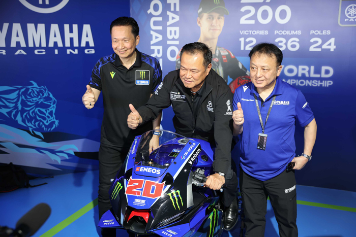 นอกจากนี้ นายกรัฐมนตรีได้ร่วมขึ้นนั่งรถจักรยานยนต์ YAMAHA YZF-R9 ที่ตกแต่งในลวดลายเดียวกับรถแข่งของ ฟาบิโอ กวาร์ตาราโร หมายเลข 20 จากทีม Monster Energy Yamaha MotoGP เพื่อถ่ายภาพเป็นที่ระลึก ท่ามกลางบรรยากาศคึกคักของแฟนความเร็ว