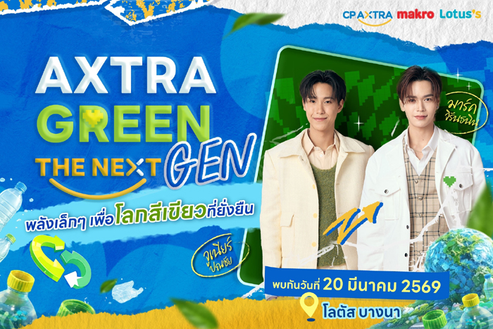 เตรียมเสียงกรี๊ดและพลังรักษ์โลกให้พร้อม! สองหนุ่มสุดฮอต จูเนียร์ ปณชัย และ มาร์ค จิรันธนิน เตรียมควงกันมา สร้างโมเมนต์สุดเอ็กซ์คลูซีฟในกิจกรรม “AXTRA GREEN THE NEXT GEN” ที่จัดขึ้นโดย บริษัท ซีพี แอ็กซ์ตร้า จำกัด (มหาชน) ผู้ดำเนินธุรกิจค้าส่งและค้าปลีก “แม็คโคร–โลตัส” ชวนแฟน ๆ เปลี่ยนพลังความฟินให้เป็นพลัง สีเขียว พร้อมเจอตัวจริงเสียงจริง วันที่ 20 มีนาคม 2569 ณ โลตัส บางนา
