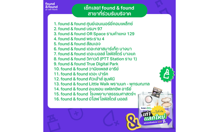 o ร้านfound & foundทั้ง 16 สาขาทั่วกรุงเทพฯ