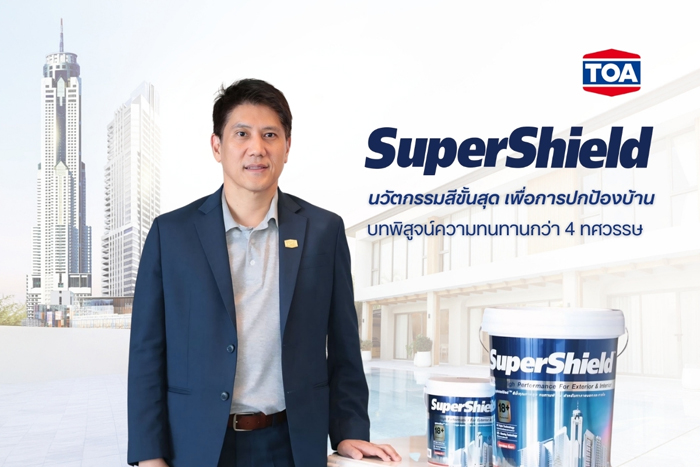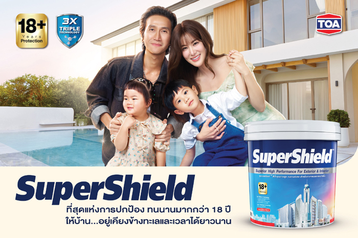 บริษัท ทีโอเอ เพ้นท์ (ประเทศไทย) จำกัด (มหาชน) หรือ TOA ผู้นำนวัตกรรมอันดับ 1 ในอุตสาหกรรมสี เคมีภัณฑ์ก่อสร้าง และวัสดุตกแต่งพื้นผิวของไทยเปิดตัวแคมเปญใหญ่ “SuperShield ที่สุดแห่งการปกป้องบ้าน” ตอกย้ำการเป็นผู้นำตลาดสีทาอาคารตัวจริง ด้วยความสำเร็จของสีซุปเปอร์ชิลด์ ที่ได้รับความไว้วางใจจากผู้บริโภคและโครงการชั้นนำทั่วประเทศมายาวนานกว่า 4 ทศวรรษพร้อมเปิดตัวภาพยนตร์โฆษณาชุดใหม่ ดึงร็อคสตาร์แถวหน้า “ตูน – บอดี้สแลม” ร่วมถ่ายทอดประสบการณ์การปกป้องบ้านและครอบครัวที่รักที่สุด ด้วยสุดยอดนวัตกรรม Triple Technology ที่มี ‘ไทเทเนียม แบเรียม และ ซิลิกา แอโรเจล’ ช่วยสะท้อนแสงอาทิตย์ได้สูงสุดถึง 99.2% พร้อมชูมาตรฐานระดับโลกด้วย ฉลาก EPD รายแรกในไทยที่ครอบคลุมทุกผลิตภัณฑ์สี