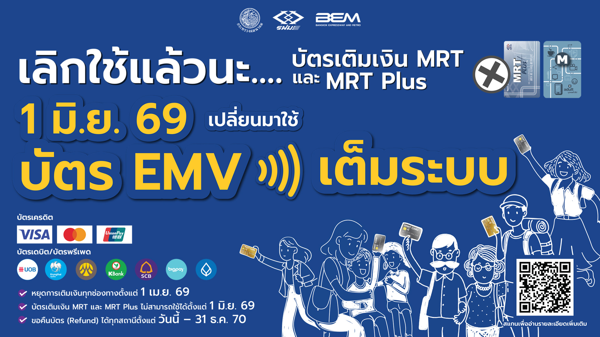 - บัตรเติมเงิน MRT และ MRT Plus ไม่สามารถใช้ได้ ตั้งแต่วันที่ 1 มิถุนายน 2569 เป็นต้นไป