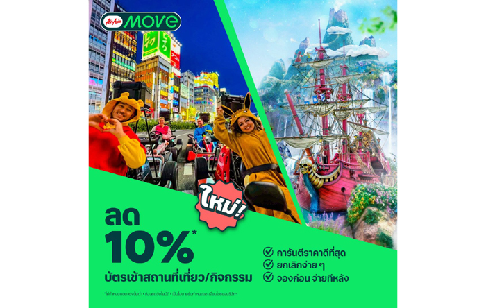 ● พร้อมรับส่วนลด 10% เมื่อจอง ‘Attractions’ กิจกรรมท่องเที่ยวผ่าน AirAsia MOVE