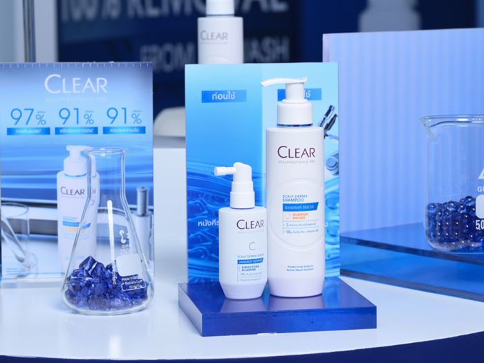 เคลียร์ (CLEAR) แบรนด์ผู้เชี่ยวชาญด้านการดูแลหนังศีรษะ พัฒนา CLEAR Scalpceuticals Pro จากองค์ความรู้ด้านสุขภาพหนังศีรษะที่สั่งสมมากว่า 50 ปี จากการทำงานร่วมกันของห้องปฏิบัติการวิจัยระดับโลก 5 แห่ง โดยอาศัยผลงานวิจัยและบทความทางวิชาการมากกว่า 80 ชิ้นด้านชีววิทยาของหนังศีรษะ รวมถึงข้อมูลเชิงลึกจากแพทย์ผิวหนังกว่า 1,100 คนทั่วโลก เพื่อยกระดับมาตรฐานการดูแลหนังศีรษะในอุตสาหกรรมความงามในหมวด Scalp care โดยผลิตภัณฑ์ในกลุ่ม CLEAR Scalpceuticals Pro ผ่านการทดสอบทางคลินิก และได้รับการแนะนำโดย ผู้เชี่ยวชาญด้านผิวหนัง ตอกย้ำความน่าเชื่อถือในระดับเดอร์มา-โปรเฟสชันนอล และสะท้อนศักยภาพของยูนิลีเวอร์ ในการรังสรรค์นวัตกรรมจากห้องแล็บสู่ผลิตภัณฑ์ที่ตอบโจทย์ความต้องการของผู้บริโภคได้อย่างแท้จริง