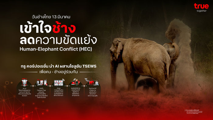 นายประพาฬพงษ์ มากนวล หัวหน้าฝ่ายทรูปลูกปัญญา บมจ. ทรู คอร์ปอเรชั่น กล่าวว่า “ทรูเชื่อว่าเทคโนโลยีสามารถสร้างสมดุลระหว่างมนุษย์และธรรมชาติได้ เราจึงนำ AI มาผสานโซลูชัน TSEWS ทำให้เราสามารถ ‘รู้จักช้าง’ ได้ดีขึ้น เข้าใจพฤติกรรมและเส้นทางการเคลื่อนที่ช้างป่าอย่างแม่นยำ เทคโนโลยีนี้จึงไม่เพียงช่วยลดความสูญเสีย แต่ยังช่วยเชื่อมความผูกพันระหว่างคนกับช้าง ให้สามารถอยู่ร่วมเกื้อกูลกันได้อย่างยั่งยืนในยุคดิจิทัล และเป็นการนำ AI มาใช้เพื่อยกระดับคุณภาพชีวิตทั้งชาวบ้านและช้างป่า”