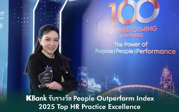 กสิกรไทยรับรางวัลสุดยอดองค์กรที่มีแนวปฏิบัติในการดูแลคนยอดเยี่ยม “People Outperform Index™ – 2025 Top HR Practice Excellence” จากงาน 100 Outperforming Enterprises เป็นธนาคารเดียวในกลุ่มการเงินและบริการที่ได้รับคัดเลือกให้ติด 1 ใน 11 องค์กรชั้นนำของประเทศ สะท้อนความเป็นเลิศด้านการบริหารทรัพยากรบุคคลที่สอดคล้องกับกลยุทธ์ธุรกิจ การพัฒนาผู้นำ การยกระดับทักษะบุคลากร และการใช้ข้อมูลเชิงลึกขับเคลื่อนการบริหารจัดการอย่างโปร่งใสและมีประสิทธิภาพ