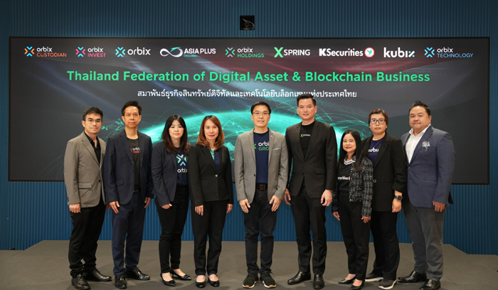 ดร.กรินทร์ บุญเลิศวณิชย์ (กลาง) ประธานกรรมการ บริษัท ออร์บิกซ์ โฮลดิ้งส์ จำกัด ในฐานะประธานสมาพันธ์ธุรกิจสินทรัพย์ดิจิทัลและนวัตกรรมบล็อกเชนแห่งประเทศไทย (Thailand Federation of Digital Asset & Blockchain หรือ TFDB) ร่วมกับพันธมิตรทางธุรกิจ ได้แก่ บลจ. เอ็กซ์สปริง บล.เอเซีย พลัส และ บล.กสิกรไทย ลงนามบันทึกข้อตกลงความร่วมมือระหว่างองค์กรภาคธุรกิจในกลุ่มธุรกิจตลาดทุน กลุ่มธุรกิจสินทรัพย์ดิจิทัล และกลุ่มธุรกิจเทคโนโลยี ในการสร้างเครือข่ายพันธมิตรที่มีความเชี่ยวชาญหลากหลายแขนง เปิดพื้นที่สำหรับการแลกเปลี่ยนองค์ความรู้ ประสบการณ์ และแนวปฏิบัติที่เป็นประโยชน์ต่อการพัฒนาอุตสาหกรรมการเงินและเทคโนโลยีบล็อกเชนของประเทศไทยอย่างเป็นระบบ รวมถึงร่วมกันผลักดันข้อเสนอเชิงนโยบายกับหน่วยงานกำกับดูแลที่เกี่ยวข้อง เพื่อสนับสนุนการเติบโตของอุตสาหกรรมอย่างยั่งยืน เสริมสร้างขีดความสามารถในการแข่งขันของภาคธุรกิจไทยให้สามารถปรับตัวและยกระดับมาตรฐานการดำเนินงานให้ทัดเทียมกับระดับสากล พร้อมรองรับการเปลี่ยนแปลงของเทคโนโลยีและโครงสร้างตลาดการเงินในอนาคต