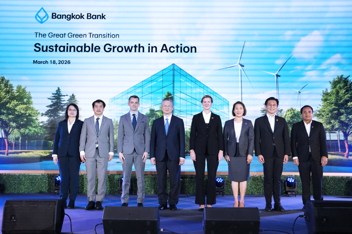 นายชาติศิริ โสภณพนิช กรรมการผู้จัดการใหญ่ ธนาคารกรุงเทพ จำกัด (มหาชน) กล่าวในโอกาสเปิดงานเสวนา “The Great Green Transition” ซึ่งจัดขึ้นเป็นปีที่ 2 ภายใต้หัวข้อ “Sustainable Growth in Action” ว่า การจัดงานในปีนี้เป็นการต่อยอดจากงานเสวนา “The Great Green Transition” ของธนาคารในปี 2568 ที่ผ่านมา เพื่อยกระดับมุมมองสู่แนวทางปฏิบัติที่สอดคล้องกับบริบทการทำธุรกิจในไทย ใน 3 ประเด็น ได้แก่ 1. การแปลงนโยบายด้านสภาพภูมิอากาศระดับโลก สู่การขับเคลื่อนในระดับประเทศ 2. นวัตกรรมพลิกโฉมพลังงานและความยั่งยืน และ 3. เส้นทางองค์กรสู่อนาคตที่เป็นมิตรต่อสิ่งแวดล้อม เพื่อให้ภาคธุรกิจไทยสามารถนำไปปฏิบัติเพื่อเปลี่ยนผ่านสู่เศรษฐกิจสีเขียวได้อย่างแท้จริง