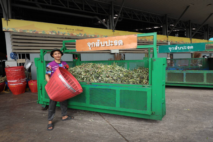 • การเพิ่มมูลค่าจากขยะ (Waste to Value): ตลาดคัดแยกขยะอินทรีย์และรีไซเคิลอย่างเป็นระบบ สร้างรายได้รวมประมาณ 26 ล้านบาทต่อปี มีการนำขยะอินทรีย์ไปแปรรูปเป็นอาหารสัตว์ พร้อมพัฒนาผลิตภัณฑ์จากของเหลือใช้ เช่น สบู่เหลวจากเปลือกส้มโอเพื่อใช้ในห้องน้ำทั่วทั้งตลาด ปัจจุบันผลิตได้ 14,000 ลิตรต่อปี และช่วยลดค่าใช้จ่ายได้ 180,000 ต่อปี และในปีนี้ 2026 ตลาดมีแผนผลิตปุ๋ยจากขยะอินทรีย์ คาดว่าจะสามารถสร้างรายได้กว่า 77 ล้านบาทต่อปี รวมถึงการนำขยะส่วนที่เหลือไปผลิตเป็นเชื้อเพลิง (RDF) ซึ่งจะช่วยลดค่าใช้จ่ายในการกำจัดขยะได้เพี่มอีกประมาณ 5 ล้านบาทต่อปี