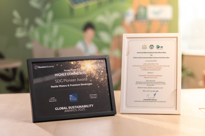 บริษัท เนสท์เล่ (ไทย) จำกัด และ เนสท์เล่ เพียวไลฟ์ ประกาศความสำเร็จครั้งสำคัญของโครงการ “เนสท์เล่ น้ำรักษ์น้ำ” ที่คลองขนมจีนในจังหวัดพระนครศรีอยุธยา ประเทศไทย ในการคว้ารางวัลเกียรติยศระดับโลกด้านความยั่งยืนถึง 2 รางวัล ซึ่งประกอบด้วยรางวัล edie Awards ในประเภทประสิทธิภาพด้านการจัดการน้ำ ขยะ และทรัพยากร (Water, Waste & Resource Efficiency) ซึ่งถือเป็นรางวัลอันทรงเกียรติสูงสุดด้านความยั่งยืนของสหราชอาณาจักร และรางวัลยกย่องพิเศษจากคณะกรรมการ (Highly Commends) ในประเภทผู้บุกเบิกด้าน SDG (SDG Pioneer Award) จากงาน Global Sustainability Awards 2025 โดยสำนักข่าว Reuters การได้รับรางวัลระดับโลกถึง 2 รางวัลในครั้งนี้เป็นเครื่องยืนยันผลลัพธ์ที่โดดเด่นจากการดำเนินโครงการเนสท์เล่ น้ำรักษ์น้ำตลอดระยะเวลา 10 ปีที่ผ่านมา ในการดูแลพิทักษ์ทรัพยากรน้ำ ฟื้นฟูความหลากหลายทางชีวภาพ และทำงานร่วมกับชุมชนอย่างแข็งแกร่ง พร้อมกันนี้ คลองขนมจีนในจังหวัดพระนครศรีอยุธยา ภายใต้โครงการเนสท์เล่ น้ำรักษ์น้ำ ยังได้รับการรับรองโดยสํานักงานนโยบายและแผนทรัพยากรธรรมชาติและสิ่งแวดล้อม กระทรวงทรัพยากรธรรมชาติและสิ่งแวดล้อม ให้เป็นพื้นที่อนุรักษ์ความหลากหลายทางชีวภาพนอกเขตพื้นที่คุ้มครองของประเทศไทย (OECMs) อย่างเป็นทางการอีกด้วย