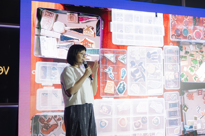 • คุณโอ๋ จิตตินันท์ จิตรประทักษ์ (Handigraph Studio) กับแนวคิด นำเสนองาน “Handicraft x Graphic” ผ่านงานแกะสลักยางลบที่บันทึก “จิตวิญญาณของสถาปัตยกรรมไทย” ลงบนงานพิมพ์ทำมือที่ประณีตจนโลกต้องหันมอง เนื่องจากการทำภาพพิมพ์ต้องมีอุปกรณ์มาก และสมัยเด็กไม่มีปัจจัยที่จะสามารถทำได้ จึงคิดขึ้นมาได้ว่า ยางลบดินสอ เป็นอุปกรณ์ที่สามารถนำมาแกะทำภาพพิมพ์ได้ เมื่อโตขึ้นมาเป็นสถาปนิก ก็มีความสนใจตึกโบราณ หรือตึกที่เป็นIconic เป็นอย่างมาก จึงได้เริ่มแกะยางลบ ในการแกะแม่พิมพ์เป็นรูปตึกต่างๆ ในกรุงเทพ จึงเกิดเป็นผลงานศิลปะที่ชื่อว่า Handigraph ขึ้น เป็นภาพพิมพ์บนกระดาษที่ปั๊มด้วยยางลบ มีเอกลักษณ์ เฉพาะตัว นอกจากนี้ยังจัด Workshop ให้คนฝึกทำ Handicraft นี้ และส่วนตัวได้พัฒนางานให้มีขนาดใหญ่ขึ้นโดยใช้วัสดุใหม่ ซึ่งได้ขนาดและความแปลกใหม่ มีผลงานโชว์ในต่างประเทศ ทั้งในแง่การอนุรักษ์สถาปัตยกรรมและนวัตกรรมการทำงานภาพพิมพ์
