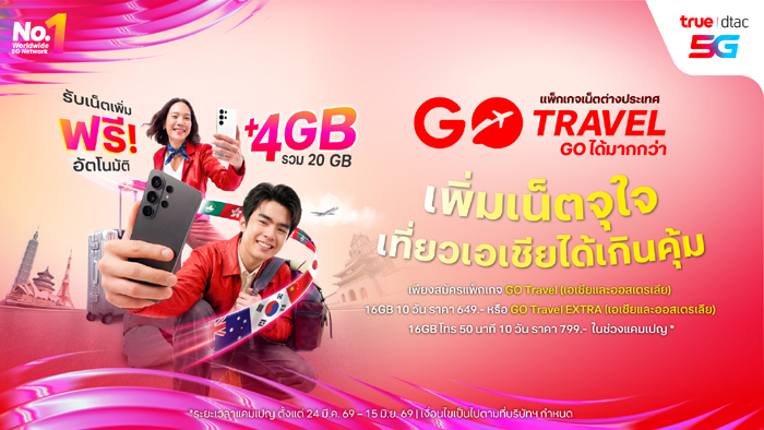 พร้อมสิทธิพิเศษที่ให้ลูกค้า GO Travel…GO ได้มากกว่า ไปกับประสบการณ์ที่เหนือกว่าการโรมมิ่ง (Beyond Roaming) จากทรู ดีแทค และพาร์ทเนอร์ชั้นนำแบบจัดเต็ม