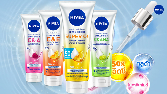 ในปีที่ผ่านมา นีเวียได้เปิดตัวนวัตกรรมอย่างต่อเนื่อง ครอบคลุมทั้งผลิตภัณฑ์ระงับกลิ่นกาย Derma Control เน้นการบำรุงผิวใต้วงแขน นับเป็นการเปิดเซกเมนต์ใหม่ในตลาดดีโอ ผลิตภัณฑ์บำรุงผิวกายที่อัปเกรดสูตรด้วยส่วนผสมสกินแคร์ เช่น Gluta และ Niacinamide รวมถึง NIVEA Skin Glow Serum ที่ผสาน Thiamidol เพื่อการดูแลปัญหาผิวอย่างตรงจุด โดยหมวด Face Care ถือเป็นหนึ่งในหมวดที่เติบโตเร็วที่สุดของตลาด และเป็นหนึ่งใน Strategic Growth Engine ของนีเวีย ปัจจุบัน Face Care มีสัดส่วนประมาณ 83% ของตลาดสกินแคร์ในประเทศไทย และเติบโต 9.5% ในปี 2025 (Euromonitor) สะท้อนให้เห็นถึงความต้องการของผู้บริโภคที่ให้ความสำคัญกับการดูแลผิวหน้า โดยเฉพาะในด้าน Brightening, Anti-Aging และ Hydration โดย ผลิตภัณฑ์ NIVEA Skin Glow Serum ได้รับการตอบรับอย่างดีจากผู้บริโภค และสามารถก้าวขึ้นเป็นอันดับ 1 ในตลาดเซรั่มทั้งแบบขวดและแบบซองได้อย่างรวดเร็ว