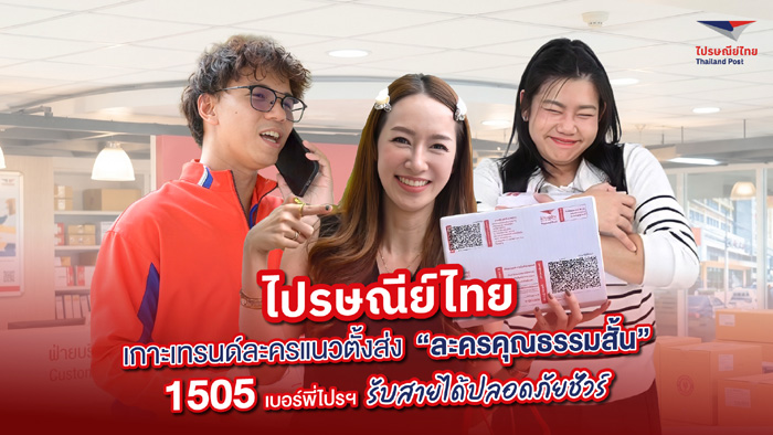 บริษัท ไปรษณีย์ไทย จำกัด เดินหน้าสื่อสารภารกิจการให้บริการประชาชน เปิดตัวคอนเทนต์รูปแบบ “ละครคุณธรรมสั้น” บนแพลตฟอร์มโซเชียลมีเดีย ถ่ายทอดเรื่องราวใกล้ตัวของผู้ใช้บริการ เพื่อสร้างการรับรู้เบอร์โทร.1505 ช่องทางการติดต่อจากบุรุษไปรษณีย์ถึงผู้รับพัสดุโดยตรง ตอกย้ำว่าเป็นหมายเลขที่สามารถรับสายได้อย่างมั่นใจ ปลอดภัย และไม่ต้องกังวลว่าจะเป็นสายจากมิจฉาชีพ