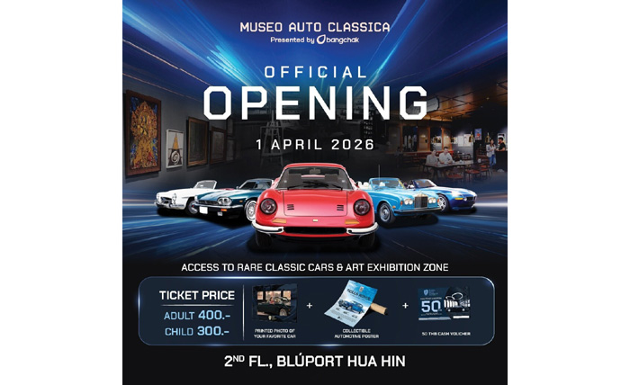 Museo Auto Classica Presented by Bangchak พื้นที่แห่งความทรงจำและความงามเหนือกาลเวลา ณ ชั้น 2 บลูพอร์ต หัวหิน พร้อมเปิดประสบการณ์อย่างเป็นทางการในรูปแบบ The Complete Classic Experience มอบประสบการณ์ฉบับสมบูรณ์แบบที่มากกว่าการชมรถยนต์ สู่ช่วงเวลาแห่งความประทับใจที่เข้าถึงได้สำหรับทุกคน