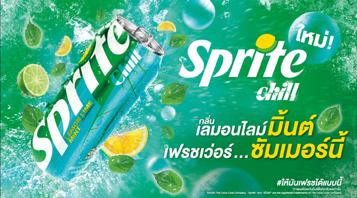 “สไปรท์” โดย กลุ่มธุรกิจโคคา-โคล่า ในประเทศไทย อันประกอบไปด้วย บริษัท โคคา-โคล่า (ประเทศไทย) จำกัด บริษัท ไทยน้ำทิพย์ คอร์ปอเรชั่น จำกัด (มหาชน) และบริษัท หาดทิพย์ จำกัด (มหาชน) ปลุกกระแสความอร่อยซ่าสดชื่นรับซัมเมอร์ กับผลิตภัณฑ์ใหม่ล่าสุด “สไปรท์” ชิลล์ กลิ่นเลมอนไลม์มิ้นต์ ผสานรสชาติที่ไม่ซ้ำใครของกลิ่นเลมอน-ไลม์ กับนวัตกรรมความเย็นซ่าสดชื่นถึงใจ ให้มันเฟรชได้แบบนี้ ไม่ว่าจะองศาไหนของซัมเมอร์ไทยก็ชิลล์กันได้แบบเฟรชเว่อร์ และพลาดไม่ได้! กับกิจกรรมระเบิดความเย็นสดชื่นดับร้อนตลอดช่วงสงกรานต์ 12 – 14 เม.ย. 2569 ที่สงกรานต์สีลม