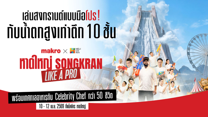 เตรียมเช็คอินแลนด์มาร์กใหม่ที่ชาวหาดใหญ่ต้องว้าว! แม็คโคร ผู้นำธุรกิจค้าส่ง ภายใต้ บริษัท ซีพี แอ็กซ์ตร้า จำกัด (มหาชน) จับมือ เฮลิโคเนีย เอช กรุ๊ป King of Food Content Thailand และพันธมิตรและผู้ประกอบการ จัดงาน “makro x Heliconia หาดใหญ่ Songkran Like A PRO” ร่วมกระตุ้นเศรษฐกิจท้องถิ่น และการท่องเที่ยวเมืองหาดใหญ่ให้กลับมาคึกคักอีกครั้ง โดยขอเชิญคุณมาสาดความสุขในวันสงกรานต์ กับน้ำตกจำลองกลางแจ้งสูงที่สุดในประเทศไทย น้ำตกเท่าตึก 10 ชั้น ในงานอีเว้นท์สุดยิ่งใหญ่แห่งปี ในคอนเซ็ปต์ Songkran Like a Pro, Eat Like a Pro, Shop Like a Pro ที่รวมกองทัพ 50 เชฟคนดัง จากรายการ IRON CHEF Thailand, MasterChef Thailand, The Restaurant War Thailand และรายการในเครือ กับครั้งแรกของหาดใหญ่กับเทศกาลอาหารที่เชฟคนดังระดับประเทศได้รังสรรค์เมนูสุดเอ็กซ์คลูซีฟมาเสิร์ฟกันถึงที่ พร้อมหกรรมสินค้าจากแบรนด์ชั้นนำมากมาย เสริมทัพด้วยคอนเสิร์ตจากนักร้อง 3 วง 3 สไตล์ Fellow Fellow, ATLAS และ Instinct ร่วมสร้างความบันเทิง ตั้งแต่วันที่ 10-12 เมษายน 2569 เวลา 11.00 – 22.00น. ณ ลานหน้าแม็คโคร สาขาหาดใหญ่ จังหวัดสงขลา