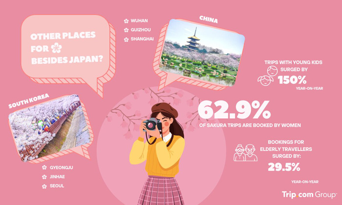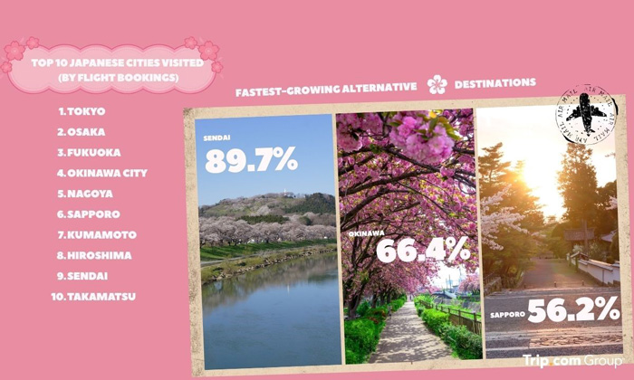 ข้อมูลการจองล่าสุดจาก Trip.com Group เผยว่า แม้จุดชมซากุระระดับไอคอนในประเทศญี่ปุ่นยังคงได้รับความนิยมอย่างต่อเนื่อง แต่นักท่องเที่ยวเริ่มหันไปเลือกจุดหมายปลายทางในเมืองรองเพิ่มมากขึ้น รวมถึงสถานที่ที่ปรากฏในซีรีส์ชื่อดัง เพื่อสัมผัสบรรยากาศที่คล้ายกับฉากในภาพยนตร์ พร้อมความเป็นส่วนตัวที่มากกว่าในช่วงพีคซีซัน