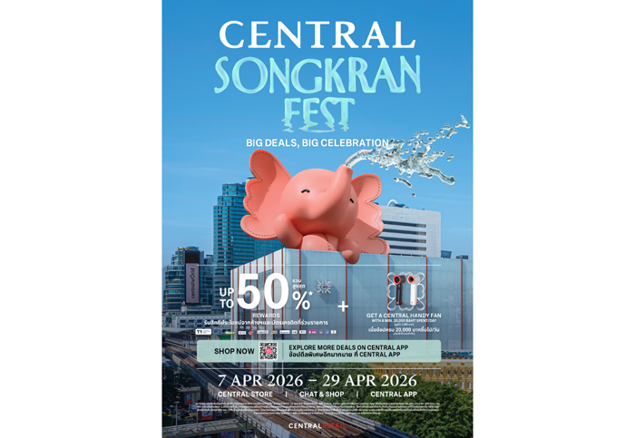 ร่วมต้อนรับเทศกาลสงกรานต์ปี 2569 อย่างยิ่งใหญ่กับแคมเปญ “CENTRAL SONGKRAN FEST” ระหว่างวันที่ 7–29 เมษายน 2569 ที่ห้างเซ็นทรัลชิดลมในเครือเซ็นทรัลรีเทลและงาน “A SENSE OF THAI 2026: ROOTED IN HERITAGE” ที่ศูนย์การค้าเซ็นทรัลเอ็มบาสซีร่วมกันถ่ายทอดบรรยากาศแห่งการเฉลิมฉลองที่ผสานเสน่ห์ความเป็นไทยเข้ากับไลฟ์สไตล์ร่วมสมัยอย่างลงตัว ชวนสัมผัสประสบการณ์ความสุขผ่านกิจกรรมสุดพิเศษตั้งแต่การช้อปปิ้งอิ่มอร่อยกับเมนูคลายร้อน และร่วมสนุกกับกิจกรรมของเทศกาลปีใหม่ไทย พร้อมร่วมสนุกในเดือนเดียวกันกับเทศกาลอีสเตอร์ที่งาน “CENTRAL EASTER DAY” ระหว่างวันที่ 4 – 6 เมษายน 2569 มอบประสบการณ์ความสนุกให้กับครอบครัวกับกิจกรรมมากมาย