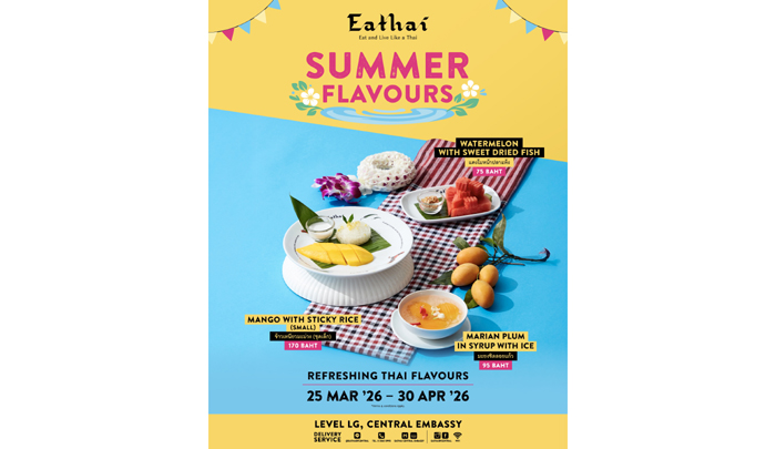 เติมเต็มความสนุกด้วยความอร่อยความสดชื่นพร้อมบรรยากาศสนุกที่ Eathai ชั้น LG เสริมสิริมงคลด้วยกิจกรรมสรงน้ำพระวันที่ 10 – 15 เมษายน 2569 เติมเต็มความสนุกโดย Live DJ TukTuk Radio วันที่ 12 – 13 เมษายน 2569 เวลา 12.00 – 14.00 น. และ 17.00 – 19.00 น.สดชื่นรับหน้าร้อนกับ Summer Flavours เสิร์ฟเมนูไทยคลายร้อนสุดพิเศษอย่างแตงโมหน้าปลาแห้ง ข้าวเหนียวมะม่วง และมะยงชิดลอยแก้ว ตลอดเดือนและพลาดไม่ได้กับความอร่อยสุดเอ็กซ์คลูซีฟ เพียงสั่งอาหารและเครื่องดื่มครบ 400 บาทต่อใบเสร็จรับฟรี! “ขนมชั้นลายผ้าไทย” ที่สะท้อนเอกลักษณ์วัฒนธรรมไทย (จำนวนจำกัด 60 สิทธิ์) วันที่ 12 – 14 เมษายน 2569